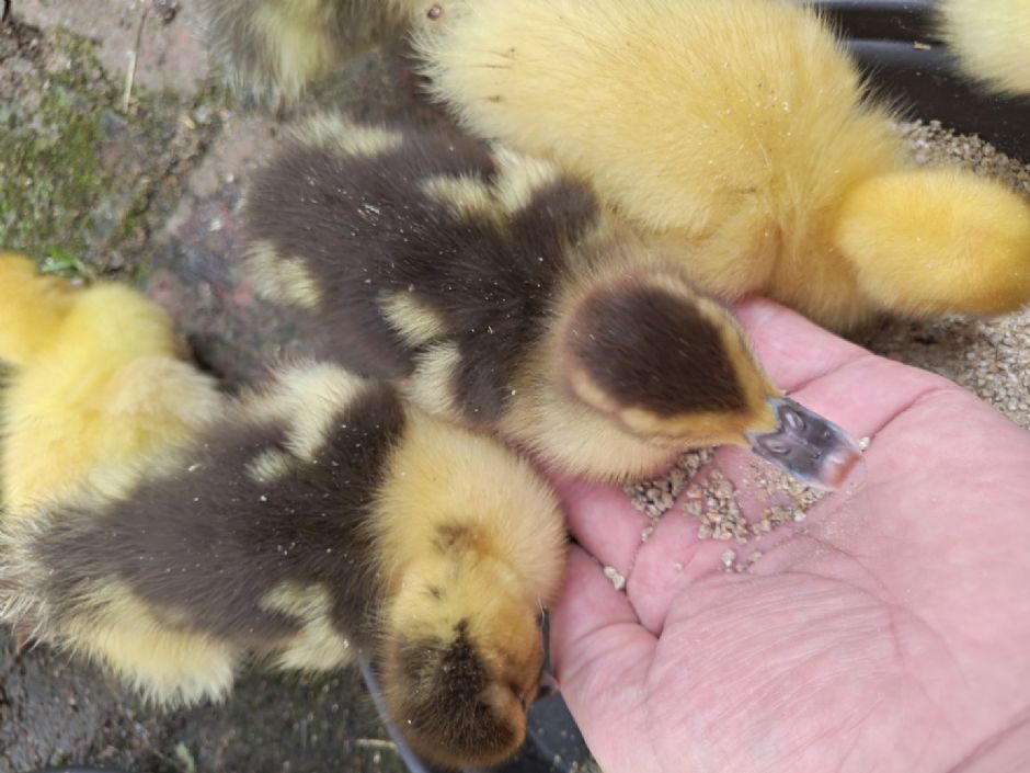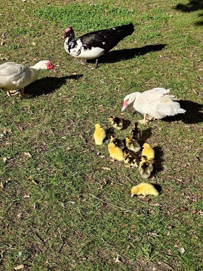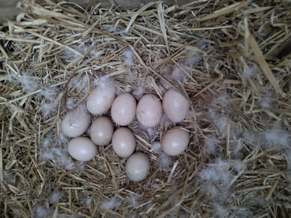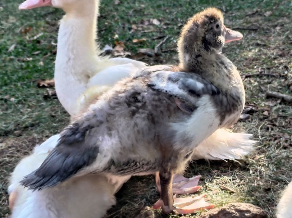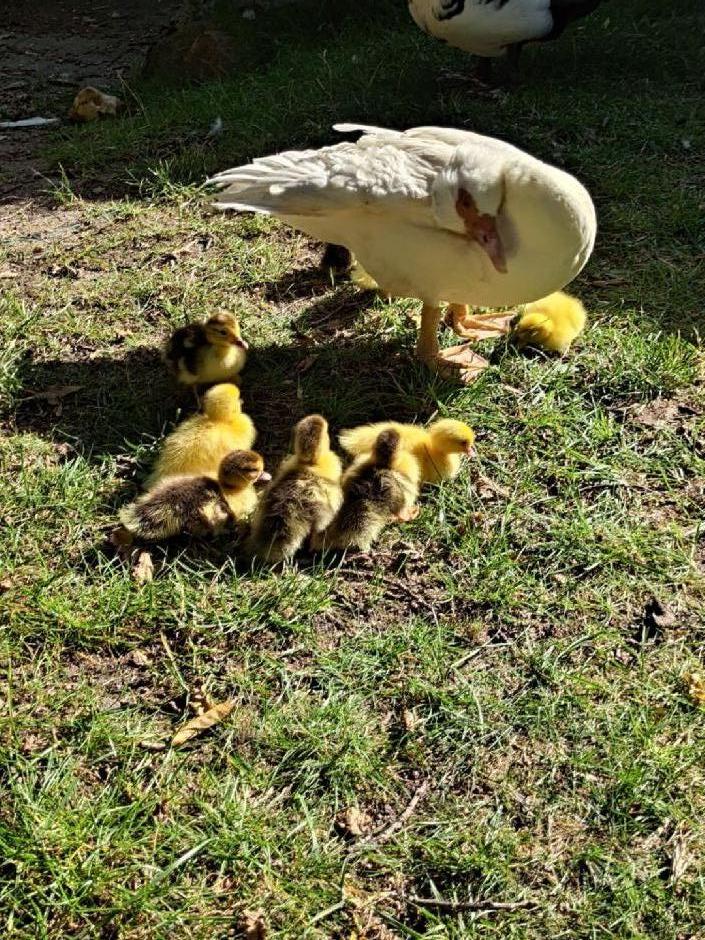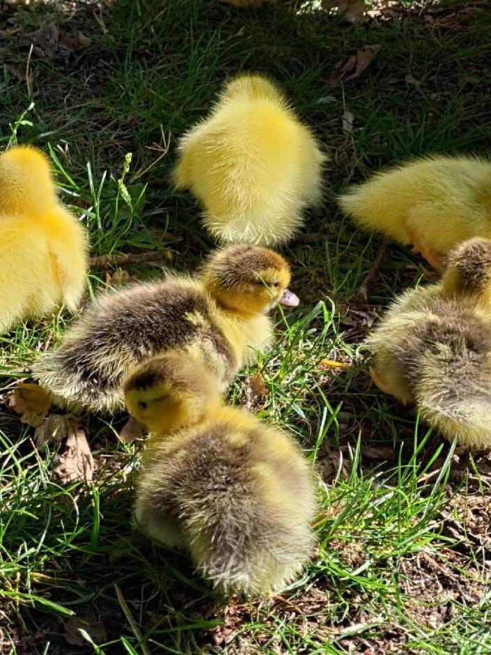 Den 12. august 2025 klækkede Uno sit første kuld ællinger – hele 10 små dunbolde! Fire af dem er helt gule og bliver med tiden hvide, ligesom Uno selv. De resterende seks er gulbrune, og vil udvikle sig til den smukke blanding af hvid og sort. To af de gulbrune skiller sig lidt ud med en lysere brun tone – måske bliver de ekstra elegante?