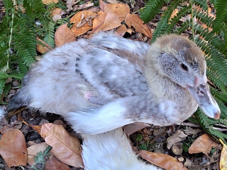 Denne ælling vokser ikke lige så hurtigt som de andre i kuldet.