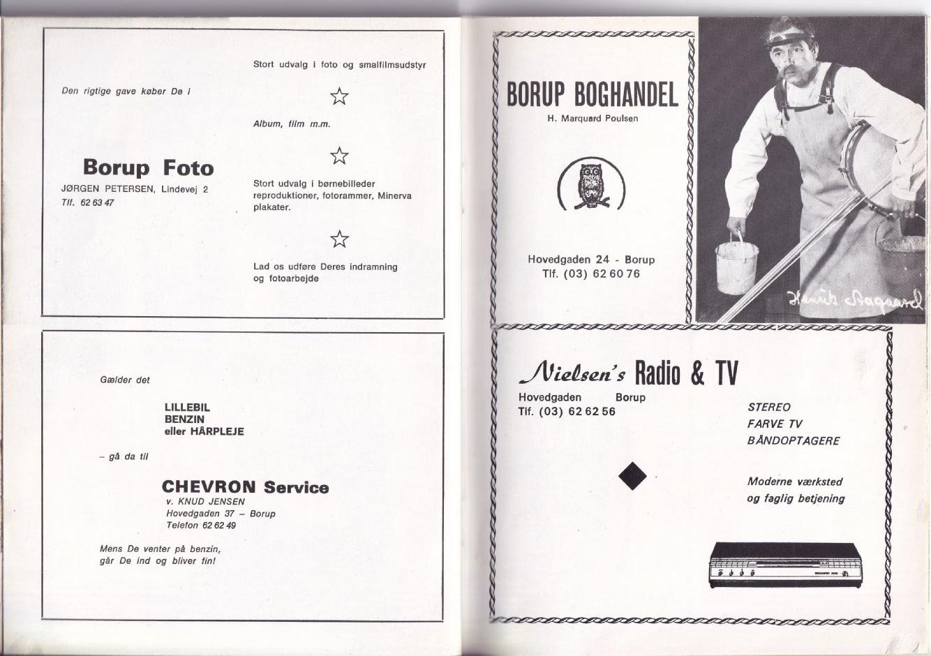 | 1971, 1/9 | 1975, 1/10 | Hovedgaden 46, Borup. | Nielsen Radio og TV |
