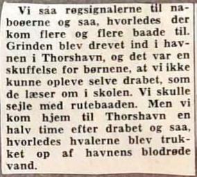 Udveksling af danske og færøske feriebørn betød at vi fik en færøsk dreng til at bo 3 uger hos os og senere kom jeg til Færøerne hos ham. Han havde aldrig kørt med tog og jeg havde aldrig set grindedrab. Jeg tror vi begge oplevede lige meget.